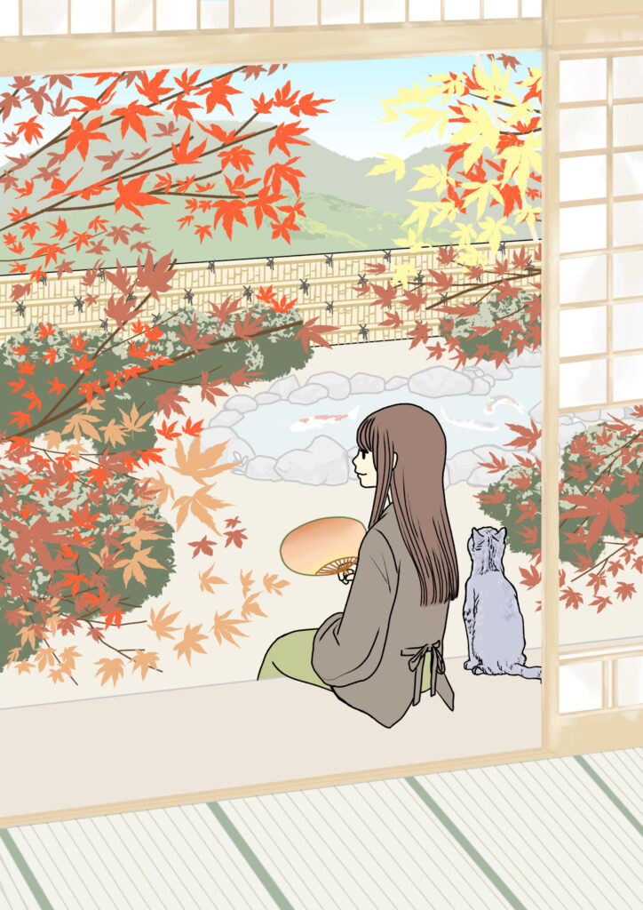 秋にペットと共に滞在できる旅館でひとりゆっくり自然を眺める